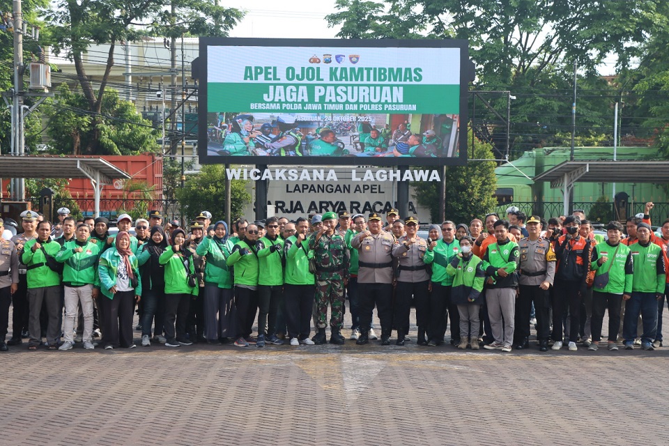 Komitmen tersebut disampaikan dalam kegiatan Apel Ojek Online Kamtibmas Tahun 2025 yang digelar di Pos Kamling Kamtibmas Pasar Besar Kota Pasuruan, pada Jumat (24/10/2025). Kegiatan ini diikuti ratusan pengemudi ojol dari berbagai platform, serta dihadiri pejabat utama Polres Pasuruan Kota dan tokoh masyarakat setempat.